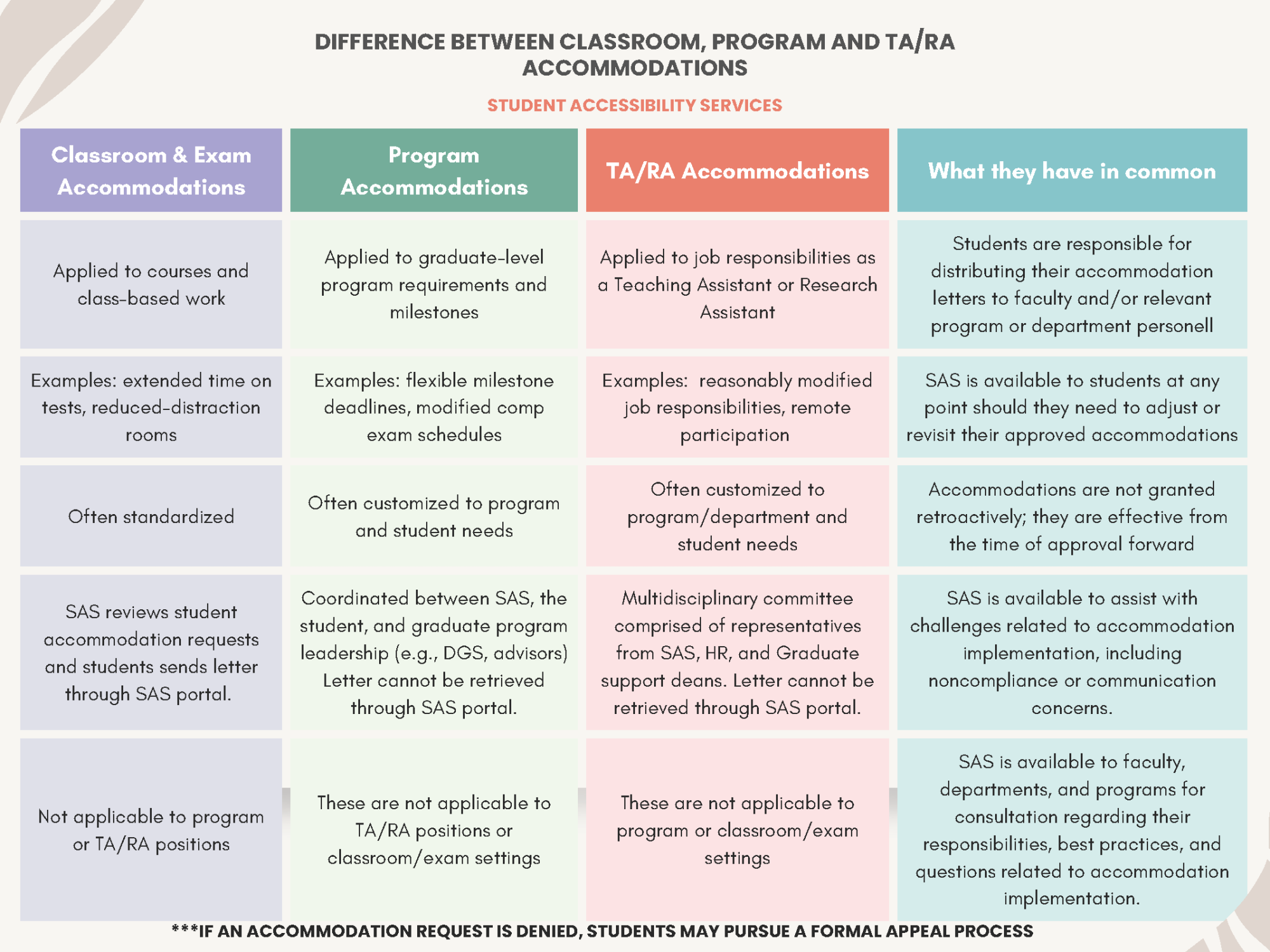 Difference Between Accommodations (Graduate Student)